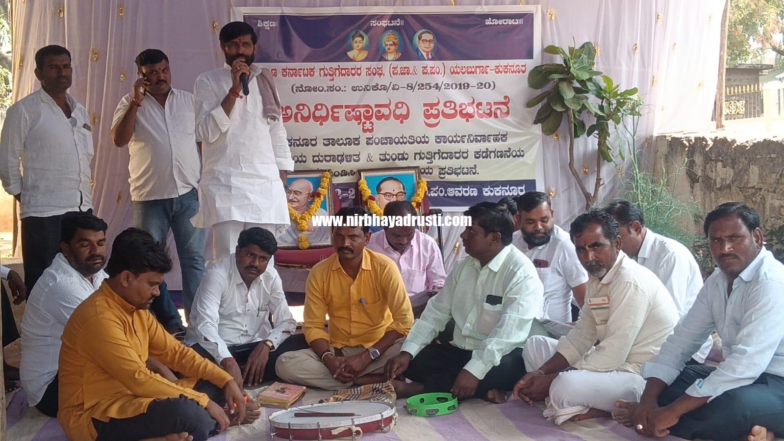 ನಂತರ ಮುಖಂಡ ಮಾರುತಿ ಗಾವರಾಳ ಮಾತನಾಡಿ ಸ್ವಜನ ಪಕ್ಷಪಾತ ಮತ್ತು ಎಡ ಪಕ್ಷೀಯ ನಡೆಯಿಂದ ಕಾಂಗ್ರೆಸ್ ಪಕ್ಷದ ಕೈಗೊಂಬೆಯಂತೆ ಕಾರ್ಯನಿರ್ವಾಹಕ ಅಧಿಕಾರಿ ಸಂತೋಷ ಬಿರಾದಾರ ಕಾರ್ಯ ನಿರ್ವಹಿಸುತ್ತಿದ್ದಾರೆ. ಶಾಸಕ ರಾಯರಡ್ಡಿಯವರು ಪಕ್ಷಾತೀತವಾಗಿ ತಾಲೂಕಿನ ಎಸ್.ಸಿ ಹಾಗೂ ಎಸ್. ಟಿ ಗುತ್ತಿಗೆದಾರರಿಗೆ ಕೆಲಸ ನೀಡುವಂತೆ ಅಧಿಕಾರಿಗಳಿಗೆ ಸೂಚಿಸಬೇಕು ಇಲ್ಲದೇ ಇದ್ದಲ್ಲಿ ಮುಂದಿನ ದಿನಗಳಲ್ಲಿ ಉಗ್ರವಾದ ಹೋರಾಟದ ಮೂಲಕ ತಮ್ಮ ವಿರುದ್ದ ಬೀದಿಗಿಳಿದು ಪ್ರತಿಭಟನೆ ನಡೆಸಲಾಗುವುದು ಎಂದು ಎಚ್ಚರಿಕೆ ನೀಡಿದರು.