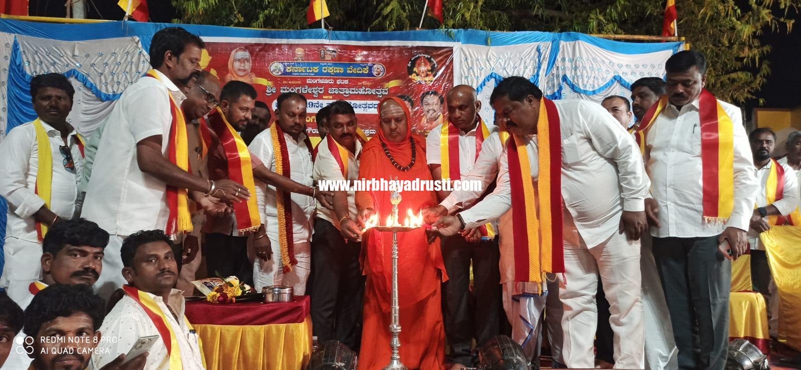 ನಂತರ ಕಾರ್ಯಕ್ರಮ ಉದ್ಘಾಟಿಸಿ ಬಸನಗೌಡ ಪೊಲೀಸಪಾಟೀಲ್ ರಾಜ್ಯ ಸಂಘಟನಾ ಕಾರ್ಯದರ್ಶಿ ಕರವೇ ಮಾತನಾಡಿ ಮಂಗಳೂರು ಗ್ರಾಮದಲ್ಲಿ ಸುಮಾರು 19 ವರ್ಷಗಳಿಂದ ಸತತವಾಗಿ ನಮ್ಮ ಕರ್ನಾಟಕ ರಕ್ಷಣಾ ವೇದಿಕೆ ಮಂಗಳೂರು ಘಟಕದ ಎಲ್ಲಾ ಸದಸ್ಯರು ವಿವಿಧ ಸಾಂಸ್ಕೃತಿಕ ಕಾರ್ಯಕ್ರಮ ಹಾಗೂ ಅನೇಕ ಹೋರಾಟಗಳನ್ನು ಮಾಡುತ್ತಾ ಬಂದಿರುವುದು ಹೆಮ್ಮೆಯ ವಿಷಯ ಎಂದರು. ಮುಂದಿನ 20ನೇ ವರ್ಷದ ಕರವೇ ವಾರ್ಷಿಕೋತ್ಸವ ಕಾರ್ಯಕ್ರಮಕ್ಕೆ ಕರವೇ ರಾಜ್ಯಾಧ್ಯಕ್ಷರಾದ ಟಿ. ಎ. ನಾರಾಯಣಗೌಡ್ರ ಈ ಜಾತ್ರಾ ಮಹೋತ್ಸವದ ಕಾರ್ಯಕ್ರಮಕ್ಕೆ ಕರೆಸುವುದಾಗಿ ಹೇಳಿದರು.