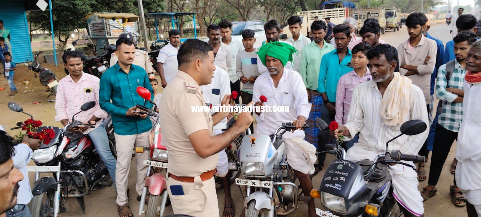 ಅವರು ಪಟ್ಟಣದಲ್ಲಿ ದ್ವಿಚಕ್ರ ವಾಹನ ಸವಾರರಿಗೆ ಗುಲಾಬಿ ಹೂ ನೀಡುವ ಮೂಲಕ ಹೆಲ್ಮೆಟ್ ಬಳಕೆ ಕುರಿತು ಜಾಗೃತಿ ಮೂಡಿಸಲಾಯಿತು. ಬೈಕ್ ಸವಾರರು ರಸ್ತೆಯಲ್ಲಿ ಸಂಚರಿಸುವಾಗ ಕಡ್ಡಾಯವಾಗಿ ಹೆಲ್ಮಟ್ ಧರಿಸಬೇಕು. ಇದರಿಂದ ನಿಮ್ಮ ಸುರಕ್ಷೆಯ ಜೊತೆಗೆ ಪ್ರಾಣಾಪಾಯದಿಂದ ಪಾರಾಗಬಹುದು ರಸ್ತೆ ನಿಯಮಗಳನ್ನು ಅರಿತು ಜಾಗರೂಕತೆಯಿಂದ ವಾಹನಗಳನ್ನು ಚಲಾಯಿಸಬೇಕು. ಅವಸರವೇ ಅಪಘಾತಕ್ಕೆ ಕಾರಣ ರಸ್ತೆ ನಿಯಮಗಳನ್ನು ಪಾಲಿಸಬೇಕು. ಶಾಲೆ- ಕಾಲೇಜು, ಜನನಿಬಿಡ ಪ್ರದೇಶದಲ್ಲಿ ವೇಗವಾಗಿ ಬೈಕ್ ಚಲಾಯಿಸದೆ, ತಿರುವಿನಲ್ಲಿ ಜಾಗ್ರತೆಯಿಂದ ಸಾಗಬೇಕು ಎಂದರು.