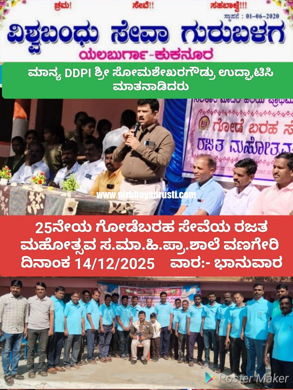 ಸೋಮಶೇಖರ ಗೌಡ್ರು, ಕೊಪ್ಪಳ ಜಿಲ್ಲಾ ಉಪ ನಿರ್ದೇಶಕರು ಶಿಕ್ಷಣಾಧಿಕಾರಿ, ವಿಶ್ವ ಬಂದು ಸೇವಾ ಗುರು ಬಳಗದವರ ಗೋಡೆ ಬರಹ ಸೇವ ಕಾರ್ಯಕ್ರಮದ ಉದ್ಘಾಟನೆ ನೆರವೇರಿಸಿ ಮಾತನಾಡಿ ವಿಶ್ವ ಬಂದು ಸೇವಾ ಯಲಬುರ್ಗಾ- ಕುಕನೂರು ಗುರುಬಳಗದ ಕಾರ್ಯ ಡಿಸೆಂಬರ 2/ 2023 ರಿಂದ ಪ್ರಾರಂಭಗೊಂಡ, ಗೋಡೆ ಬರಹ ಕಾರ್ಯ ಡಿಸೆಂಬರ್ 14 /2025 ಕ್ಕೆ 25ನೇ ರಜತ ಮಹೋತ್ಸವ ಗೋಡೆ ಬರಹ ವಾಗಿದ್ದು. ಇಂತಹ ಗೋಡೆ ಬರಹದಂತಹ ಕಾರ್ಯದಿಂದ ಮಕ್ಕಳಲ್ಲಿ ಇರುವ ಕಲಿಕೆ ಮತ್ತು ಉತ್ಸಾಹ ಹೆಚ್ಚುಸುವಂತಹ ಕಾರ್ಯವನ್ನ ಬಳಗದವರು ನೆರವೇರಿಸಿಕೊಂಡು ಬರುತ್ತಿದ್ದು.